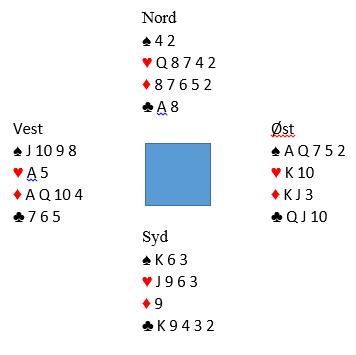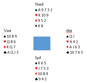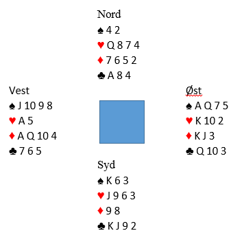 Hvis det ser slik ut er hjerter fra syd riktig motspill, for med spar tilbake fyker kontrakten hjem. Slik så imidlertid hele spillet ut i virkeligheten: