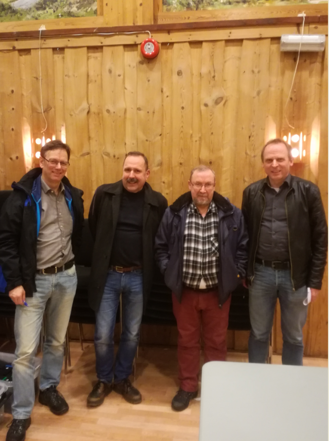 f.v. Jonny Rasmussen, Erik Eriksen, Finn Fyllingslid og Bjørn Olav Ekren. Arild Rasmussen og Helge Hantveit var også med på laget.