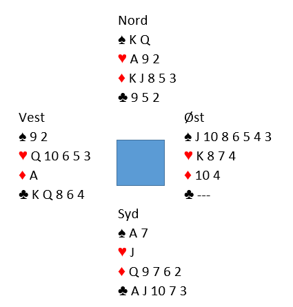 Så fulgte hjerter 5 fra vest, og makkeren i øst la ruter 9.