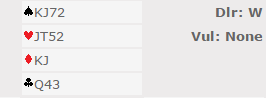 Selv åpner jeg endel 11 poengere selv med balansert fordeling hvis det er 4432 fordeling (men aldri med 4333 og 11). Men jeg liker at de to fargene er bra hvis jeg skal åpne med mindre enn 12 hp. Denne hånden virker nokså rusten og jeg passet, og det kan i alle fall ikke kritiseres, det bir kun et stilspørsmål.