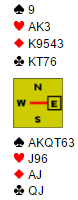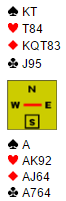 Det er nok en dårlig slem hvor det veldig ofte vil bli to kløvertapere, eller en taper i hjerter og en i kløver. Men kortgudene hadde plassert Ø/V sine kort gunstig for de som meldte 6 ruter spilt av syd: