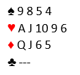 Spar- og kløverstikkene tas, kanskje etter å ha tatt for ruter ess på et tidspunkt. Fra nord kastes ruter både på den fjerde sparen og fjerde kløveren. Før den siste kløveren fra syd ser N/S sine kort slik ut: