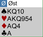 Å spille 7 hjerter med disse kortene i Trondheim lørdag ga -14 til Ø/V. De som var i 7 grand (over halvparten) fikk +9. Å notere 7 grand med tretten gir +2220 mot +2210 for 7 hjerter, men i parturneringsregnskapet er forskjellen mye større!