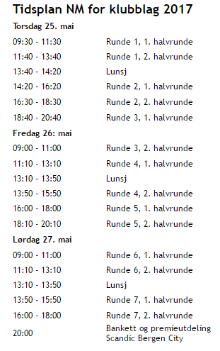 Torsdag 25.5. starter finalen i NM for klubblag i Bergen med Bergen Akademiske BK som arrangør.