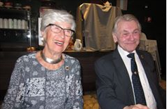 To av de meste markante bridgeskikkelsene i Bergen hygger seg på lagfinalens avslutningbankett: Kirsten Rita Arnesen og Jon Sveindal