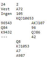 Ø/V har også flott tilpasning, og ti stikk i sparkontrakt kan ikke rokkes. Resultatene svingte fra +920 N/S for vunnet lilleslem til + 590 og til og med +690 Ø/V for 4 spar doblet med ti og elleve stikk! I noen kamper var begge N/S-parene i slem, og da den ene gikk beit etter feil hjertervariant, og den andre vant den ble det et svingspill som avgjorde veldig mange VP.