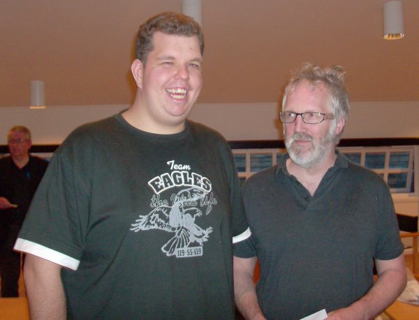 Etter utdeling av diverse oppmerksomheter kom vi i gang med spillinga, en monrad-turnering med 9 og et halvt bord og med syv runder a 3 spill. Randi og Rolf vant foran Lars-Erik og Geir med Herman og Olav på tredje.