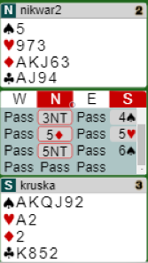 Svenske Aarne var i 6 spar uten at motparten hadde meldt noe. Det er en glimrende slem. Selv om sparen sitter 5-1 er det gode sjanser.