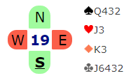 Meldingene gikk slik (Syd giver, Ø/V i sonen):