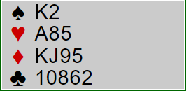 Det er et stilspørsmål. Noen par åpner med nesten alle balanserte 11-poengere, andre passer alltid. Selv tror jeg en mellomting er best, dvs. åpne hvis man har en brukbar femkorts farge, eller to bra fire-korts farger og spesielt hvis man har majorfargene. Ut fra det er dette ikke en åpning, og passes blir kontrakten 3 grand spilt av syd fordi han vil vise 20-21 grand. Nord vet da at de har 31-32 balanserte til sammen, og det er normalt ikke nok til slem. Men det er altså på grensen til slem det her. Og om det skal åpnes eller ikke er rett og slett et spørsmål om stil.