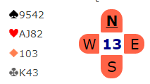 La oss si du sitter nord med disse kortene (giver syd, Ø/V i sonen):