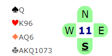 Siden vest ikke kan ha særlig sterke kort tenkte Brink at da må han nok ha meldt pga. god fordeling. Det betyr at det fort sitter skjevt mot denne hjerterslemmen.