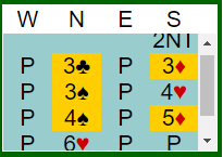 Ved det andre bodet meldte Sælensminde (øst) inn 2 ruter. Syd meldte spar, nord sa 3 kløver, og da syd viste forsinket hjerterstøtte med 3 hjerter forslo nord 3 grand.