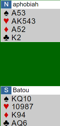 Dette er en fin lilleslem i hjerter (eller grand), men ikke mer. De finner raskt ut det er poeng nok til lilleslem, og at styrken er i nærheten av god nok for storeslem. Men hvis hjerter blir satt som trumf bør det kunne fastslås at å melde 7 hjerter er feil, for at hjerteren går er litt for liten sjanse.