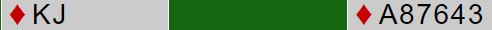 På et tidspunkt var stillingen i settet 31-0 til lag LEVINE. Da fikk lag MOSS inn noen IMP, men i stedet for de 12 impene de vant i ett spill kunne det godt vært 13 i favør LEVINE. Helness-Helgemo var i det spillet 3NT som enkelt ble vunnet med et par overstikk, mens polakkene ved det andre bordet gamblet slem i ruter hvor trumfen så slik ut: