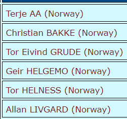 Det norske laget ser slik ut: