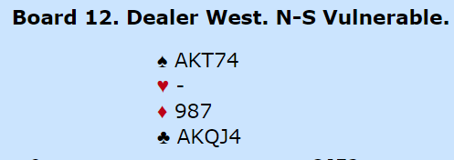 Spillet var en formalitet, tretten enkle stikk og slemsving inn siden N/S ved det andre bordet stoppet i lilleslem. Nesten halvparten av N/S-parene var kun i lilleslem.