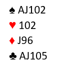 Jeg har tro på en såkalt tight-aggressiv stil. Dvs. åpne tynt med fordelingshender, spesielt hvis fargen(e) er bra så det kan gå bra også om det ikke er tilpasning i noen farge. Med jevn fordeling tror jeg det er best å passe med 11, spesielt om det er 4-3-3-3 fordeling. Med 4-4-3-2 erl nok noen få hender med 11 er bra nok, da kaller jeg dem 12 poengere.