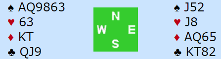 Så å vinne 4 spar er ikke enkelt uansett. Og computeranalysen sier også at det er bet med åpne kort om vest spiller kontrakten: