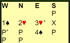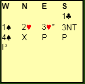 Eneste forskjell er at syd doblet østs 3 hjerter.