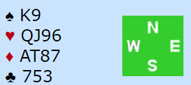 Om vest åpner eller passer bør ikke ha så stor betydning, men av og til skjærer det seg for selv meget sterke makkerpar. Mange liker å åpne med 10-11 poeng når de har to farger spesielt hvis de har majorfarger. Her er sparfargen glimrende, men hjerterfargen svak. Det må være en nedre grense et sted. Jeg tipper enkelte som har litt sansen for tynne meldinger med slikt ville passet med dette, men kanskje åpnet hvis kløver dame var hjerter dame.