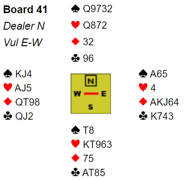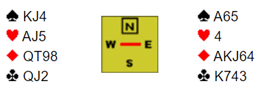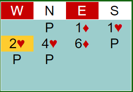 2 hjerter viste god løft av ruterfargen, og etter aggressive meldinger fra N/S tok øst sjansen på lilleslem.
