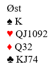 PS. Idet innspillet skal foretas er det kun et lite problem for spillefører. Øst kunne hatt singel spar konge fra start, og 1-5-3-4 fordeling. La oss si han startet med: