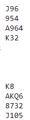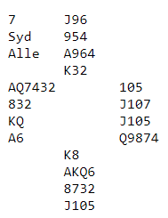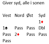 Idet røyken hadde lagt seg var dette fire trumfstikk, to kløverstikk og to sparstikk til Ø/V, altså hele tre bet - i sonen, +300 til Ø/V.