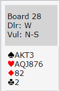 Det syntes vest ved bordet vi satt også, og hun valgte å hoppe til 3 hjerter. Hun var for så vidt inne på det riktige, at dette er en spillesterk hånd. Men hun valgte nok feil melding.