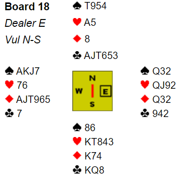 Finnes motspillet blir det 19 IMP til NZ i stedet. Vi tapte til slutt kampen med 4 IMP som ga oss 8,62 VP. Finnes motspillet i dette spillet blir det i stedet en hyggelig seier, 17,71 VP.