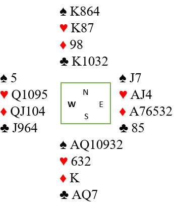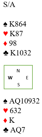 Gunn Tove Vist meldte 6 hjerter som et forslag. Det synes jeg har mye for seg da hun vet makkeren har spar konge, kanskje femte (og hun behøvde ikke ha knekten) og altså helt sikker ikke har spar dame. Øst kan se at kløver ess vil gi avkast for en spar på hennes egen hånd i hjerterkontrakt, så det kan godt være 6 hjerter er en bedre kontrakt enn 6 spar hvis sparfargen sitter skjevt fordelt.
