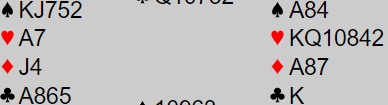 Slik hele spillet så ut var både 6 hjerter og 6 spar bra kontrakter: