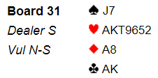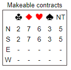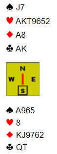 Som du ser var det bare å toppe ruteren så ville det vært å notere en meget fet +1430 på listen. Ved det andre bordet var de i utgang, ytterligere 13 IMP feil vei. Merk at 6 ruter er en ganske bra slem. Og med åpne kort står 7 ruter (toppe ruteren, sette opp hjerteren med en stjeling). 6 hjerter står det også, men da må man altså spille med åpne kort.