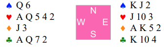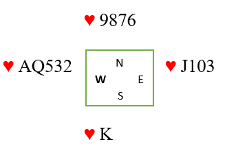 Her er det mer enn nok med overganger. Derfor bør det ikke spilles hjerter knekt eller 10 i første hjerterrunde, for hjerteren kan jo godt sitte slik: