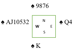 Men som sagt er ikke bridge alltid rettferdig. Da 7 spar ble spilt og spillefører feilaktig forlange damen fra øst satt trumfen 3-2 med kongen i saksen, så det spilte ingen noen rolle hva han gjorde før han med ett bredt smil noterte +2210.