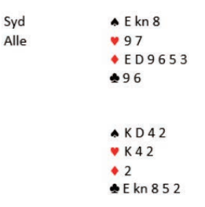 Kanskje vest skulle fulgt med ruter knekt i første runde, men det hadde vært litt dumt hvis øst har singleton 10. Øst kunne gått i med kløver dame i stedet for tieren, men da spiller Thea spar til knekt fulgt av ruter. Vest kommer inn, kan ta for kløver konge og hjerter ess, men resten går til Thea for 9 stikk og hjemgang. Ved et annet bord i turneringen fikk en superstormester samme utspill. Der ble første stikk vunnet med kongen og kontrakten gikk beit.//
