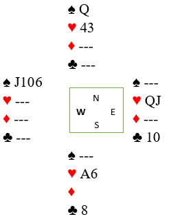 På spar dame er øst skviset i hjerter og kløver, Kaster han hjerter forsvinner syds kløver 8 og A-6 i hjerter tar de to siste stikkene. Om øst kaster kløver 10 forsvinner hjerter 6, og sa tar hjerter ess + kløver 8 de to siste stikkene.