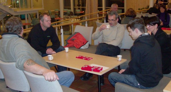 Ogndal BK arrangerte lynkurs her forleden og ni deltagere møtte opp. Dette er en kort innføring om spillet vårt og vi bruker ikke meldinger her. Et slikt kurs varer 3 til 4 timer så det er et veldig enkelt middel å få tak i kursdeltagere på, samtidig som de får se om dette er noe for dem. Eva og Per Arne Flått var kursholdere både for deltagerne og for oss som skal kjøre lynkurs på Innherred fremover. De har kjørt dette kurset i Namdalen med stort hell, og de kjører nå bridgekurs over 12 kvelder med stor oppslutning. Mye spilling på lynkurset. Per Arne under teoridelen. Ogndal BK starter for øvrig bridgekurs onsdag den 13. januar over 8-12 kvelder, og kommer med mer info om dette senere. Vi satser også på å få avviklet et lynkurs like på nyåret i forkant av kurset. Ellers har Ogndal BK invitert Mære/Sandvollan BK, Inderøy BK, Malm BK og Namdalseid BK til samarbeid om rekruttering i dette området. Ved eventuelle spørsmål kontakt rekrutteringsansvarlig Elisabeth Skotvold eller leder Rune Kvaran i Ogndal bridgeklubb.