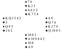 1. Trumfe med knekten og du er hjemme om vest har hjerter dame. Det går selvsagt galt om øst som nesten garantert har startet med dobbelton spar kan trumfe over med damen, for deretter er det en uungåelig rutertaper også.