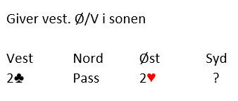 2 kløver er sterk, kunstig melding. 2 hjerter er naturlig, positivt svar med minst femkorts farge.