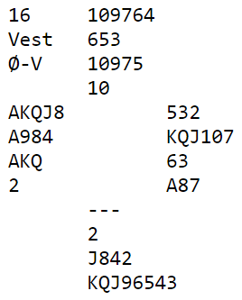 Da jeg spurte Ueland om betydningen av 5NT og 6 kløver innrømmet han at det ikke var helt klart, så spillet og meldesituasjonen viser uansett at det nok ikke er så mange som har klare avtaler i denne litt uvanlige meldesituasjonen. Forslag til hvordan det kan avtales her kan de lese om i forrige innlegg her i bloggen.