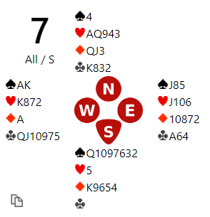 Det kom spar ut til esset fulgt av kløver dame som fikk seile og viste at nord hadde krav på trumfstikk. Etter en trumffinesse var det om å gjøre å ikke rote på seg tre hjertertapere, men det går bra. Berset spilte simpelthen liten hjerter mot J-10-x to ganger, og han tapte to hjerterstikk og ett trumfstikk, ti stikk og +710.