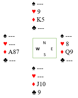 Først på et motspillsproblem, nord er motspilleren, øst er blindemann: