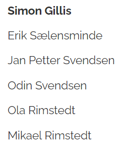 Tre nordmenn, og Gillis er fra England mens Rimstedtbrødrene er fra Sverige.