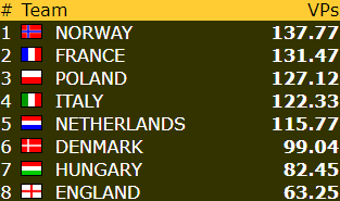 I U-26 og U-16 har det gått trått for Norge så langt. U-16 noterte et par seiere, men så har det kommet en rekke soleklare tap, riktignok mot flere av de beste lagene. Det er mange VP å kjempe om fortsatt, og de er kun halvveis i turneringen. Så der er det bare å brette opp ermene og kjempe seg oppover på listen.