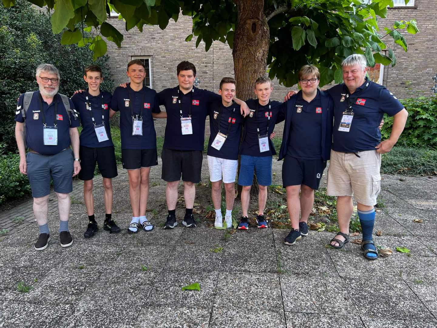 KLARE FOR VM! Bak fra venstre, Arne Osnes Devik, Anders Brogeland, Magnus Sætre og Thomas Tøsse. Foran: Christian Fredrik Johnsen (i midten) og Are Borgar Landsvik. (for ordens skyld, laglederne Lars Eide og Sten Bjertnes som flankerer bakerste rekke, og Kristian Barstad Ellingsen foran til venstre er ikke under 21...)