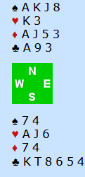 Som du kanskje har lagt merke til er det denne gang faktisk en sjanserik kontrakt da makker i nord har grei kløvertilpasning, mange toppkort og dessuten stjeleverdi i hjerter.