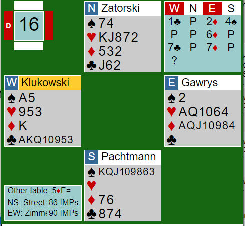 ZIMMERMANNs Gawrys-Klukowski som Ø/V hadde først hadde meldt seg opp i feil kontrakt slik kortene satt fordelt: