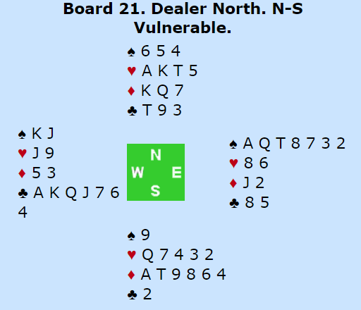Som du ser i meldediagrammet, meldte Ø/V 7 ruter som ikke på noen måte er tullette, men…