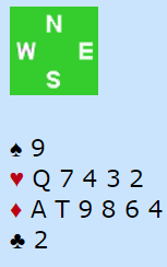 Nord er moden for innspill i hjerter, men det er ikke helt sikkert spill å gjøre det. På det siste stikket, idet de skulle ned på tre kort kastet nord hjerter 10. Han hadde underveis også kastet en spar. Det er klart at en lur spiller på nords plass kan ha blanket spar konge, og så sitter han igjen med Q-7 i hjerter i stedet for singel dame. I så fall må spar konge toppes ut for å få tolv stikk.
